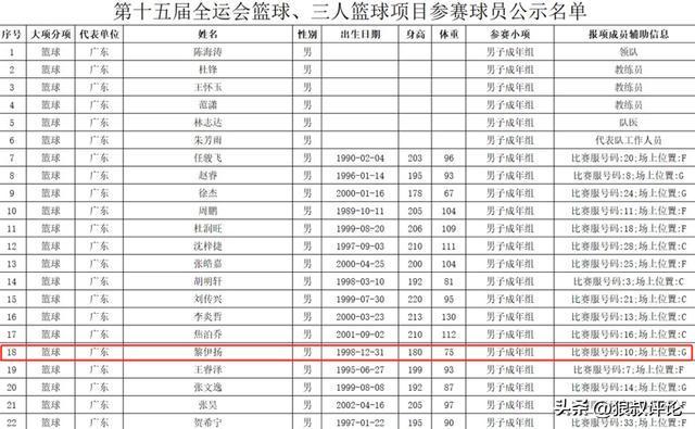 广东全运男篮离队首人?黎伊扬仍在福建训练 此前入选16人大名单