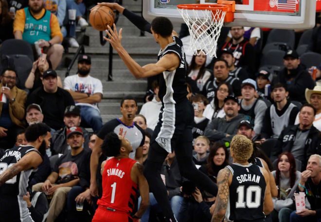 数据说话。马刺本赛季场均得分不过118.2分,联盟中游水准,但场均失分只有103.6分,这已经超越雷霆,防守效率也比雷霆高,联盟第一!马刺平均每场比赛净胜分高达14.6分,依旧是联盟独一档的存在!还有一组数据更夸张:只要文班亚马在场,马刺常规轮转的8人阵容,任意组合的5人组+4人组+3人组+2人组,全部赢分!最夸张的是,当文班亚马带着榜眼哈珀+瓦塞尔+约翰逊时,百回合赢对手81.3分!文班亚马这还是正常人么?常规赛前5场,文班亚马场均30.2分14.6篮板3.4助攻4.8盖帽!